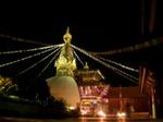 Im Frühsommer sind Stupa und Tempel in einem Meer von Rhododendronblüten eingebettet, der Nationalblume Nepals.
