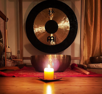 Mittelpunkt stellt. Die heilsamen Klänge von Klangschalen und Gong schaffen einen